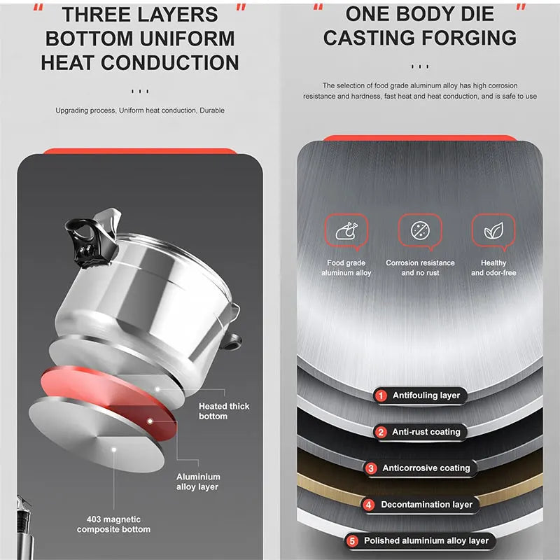 Upgrade your cooking experience today and unlock the benefits of quick, healthy meals with the Professional Pressure Cooker Heavy-Duty Aluminum Cooking Pot. Don't wait—add this essential kitchen gadget to your collection now!